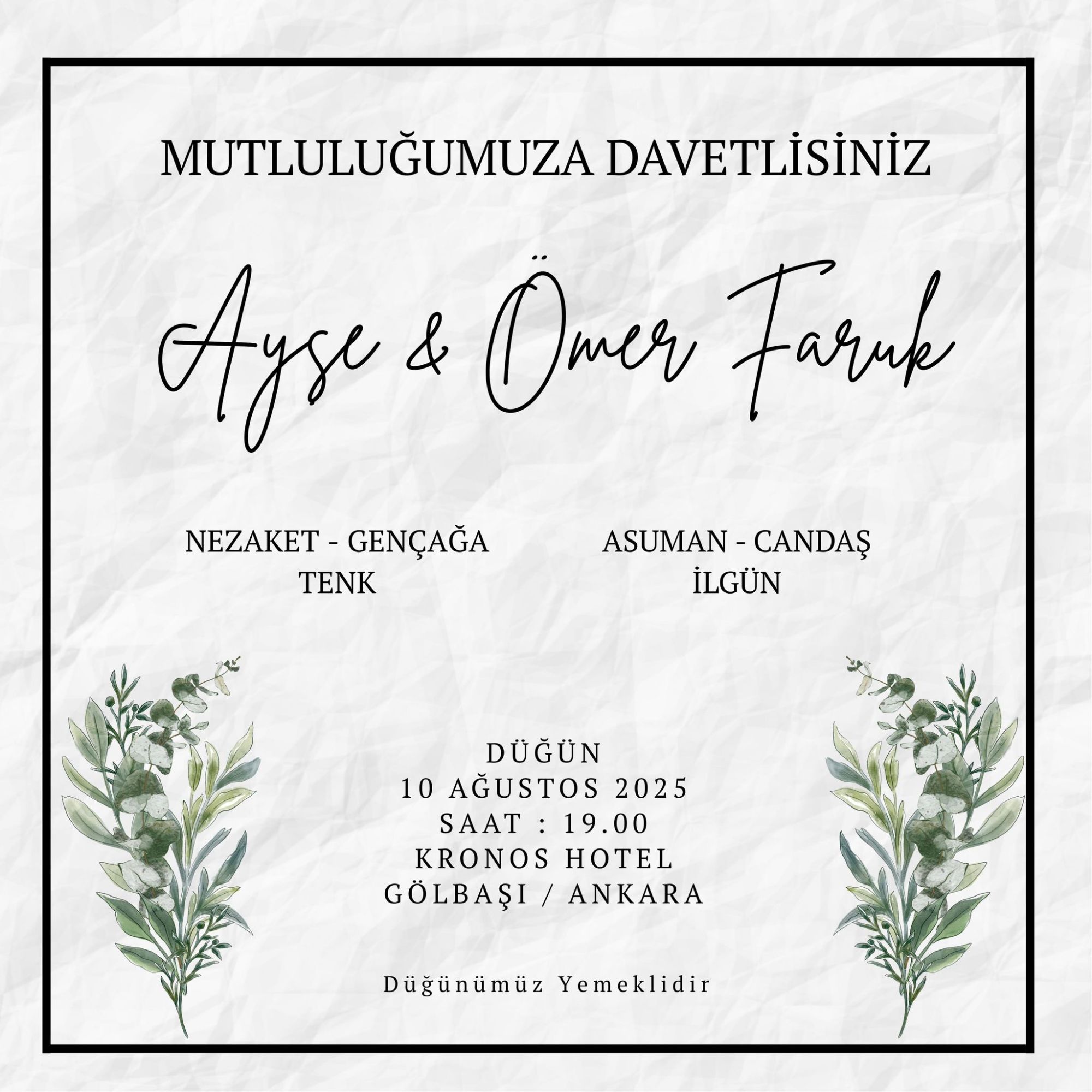 Ayşe Tenk & Ömer Faruk İlgün Çiftinin Düğününe Davetlisiniz