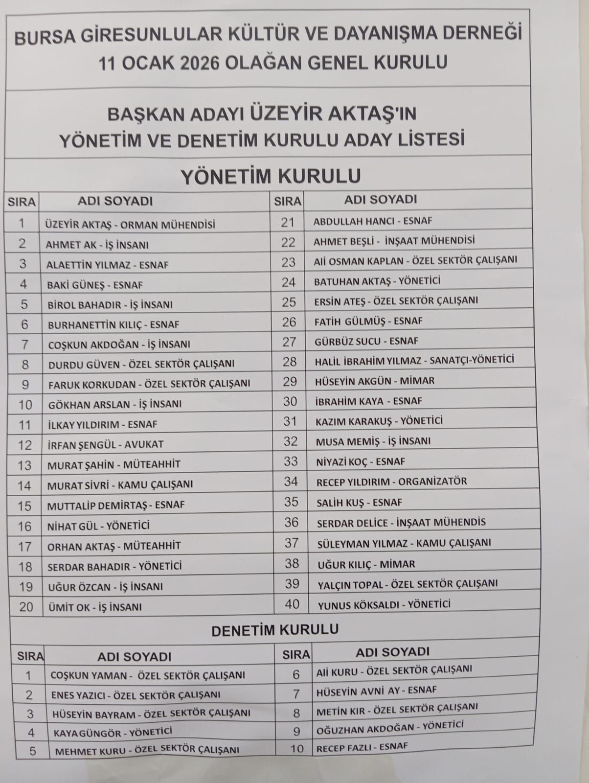 Bursada geniş üye  kitlesine sahip olan Sivil toplum kuruluşu  Bursa Giresunlular Derneğinde Görele İlçemizi temsilen köylümüz Murat Sivri Üzeyir Aktaş’ın yönetim kurulu listesinde yer aldı.
