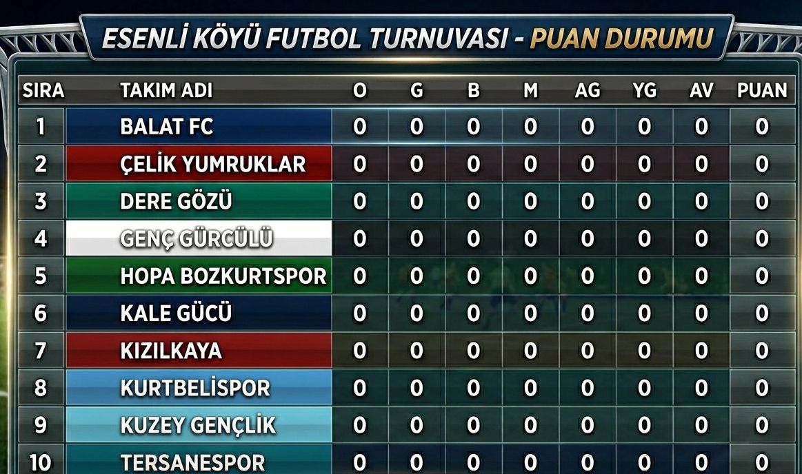 Esenli Köyü Futbol Turnuvası FİKSTÜR PUAN DURUMU