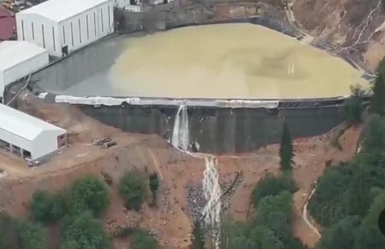 Giresun Harşit Vadisinde Doğankentte Alagöz Maden Atık havuzu yağmurlu havada taşmış dere suyuna karışmıştı.