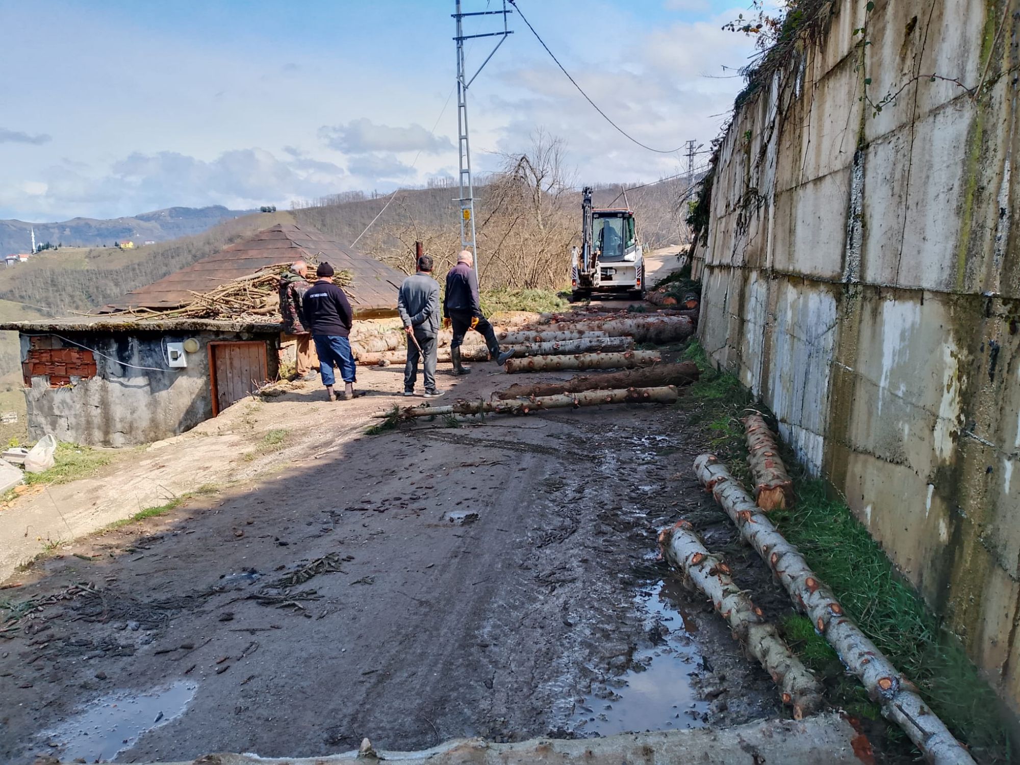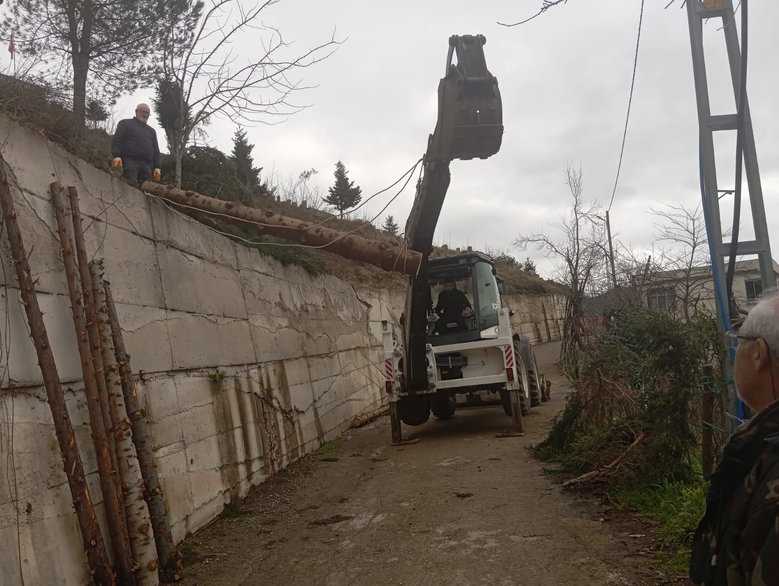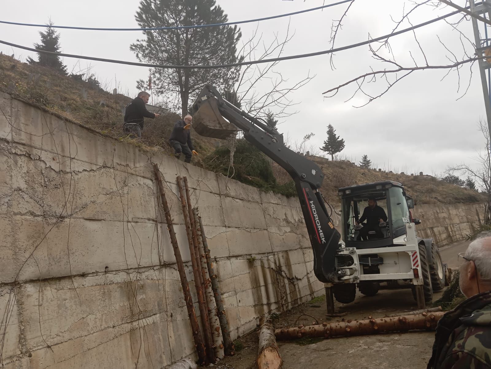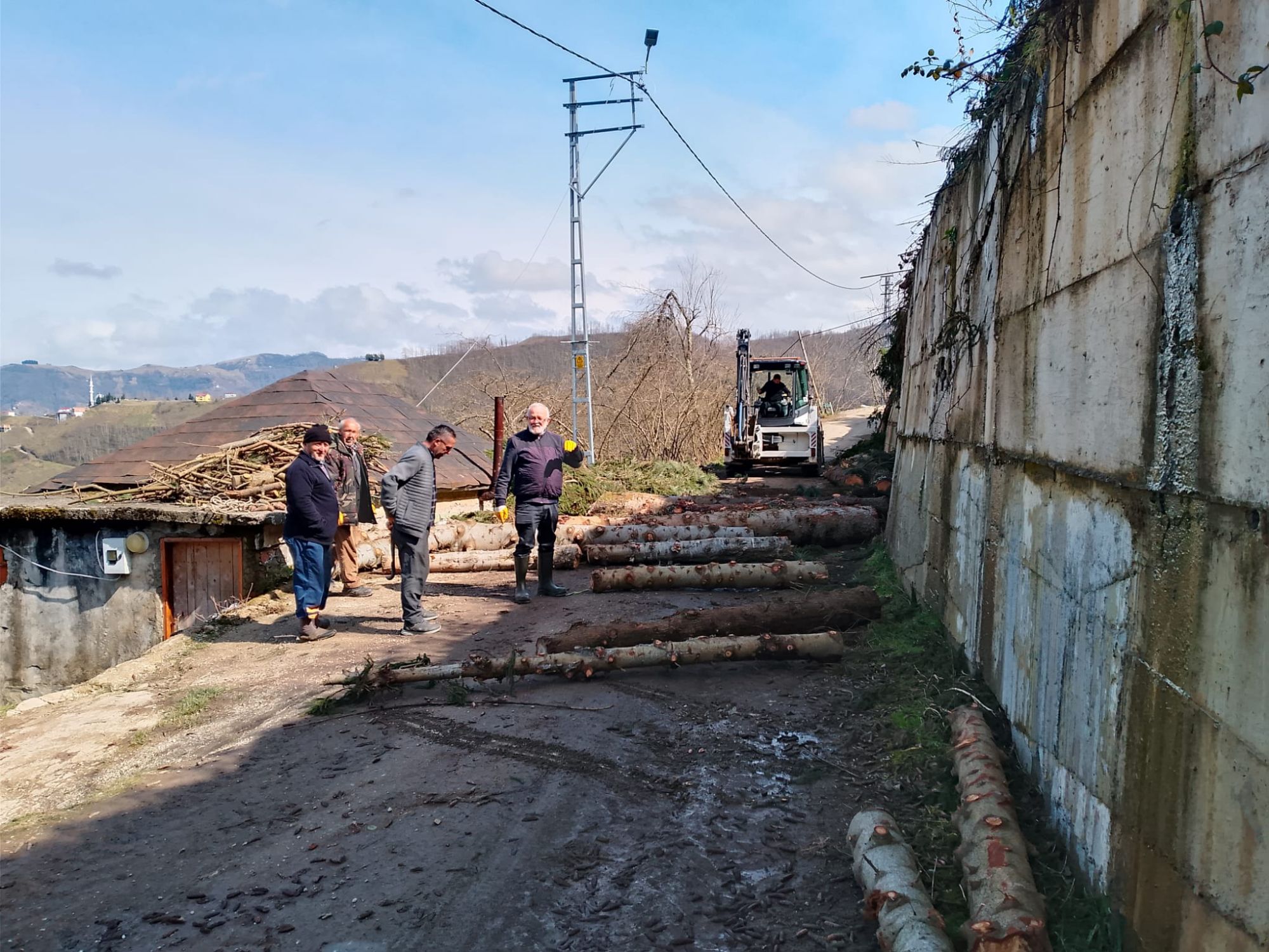 Mezarlık’ta kesilen ağaçlar işlenmek üzere kereste fabrikasına götürülmüştür.Burada işlenerek köyümüzde yapılacak işlerde kullanılacaktır. Bu gün köylülerimizin katılımıyla tomruklar kamyonlara yüklendi