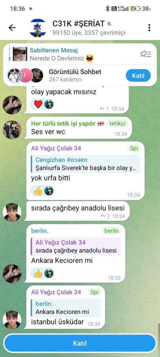 Kahramanmaraş ve Şanlıurfa’daki okul saldırılarını gerçekleştiren saldırganların üye oldukları iddia edilen Telegram grubu.
