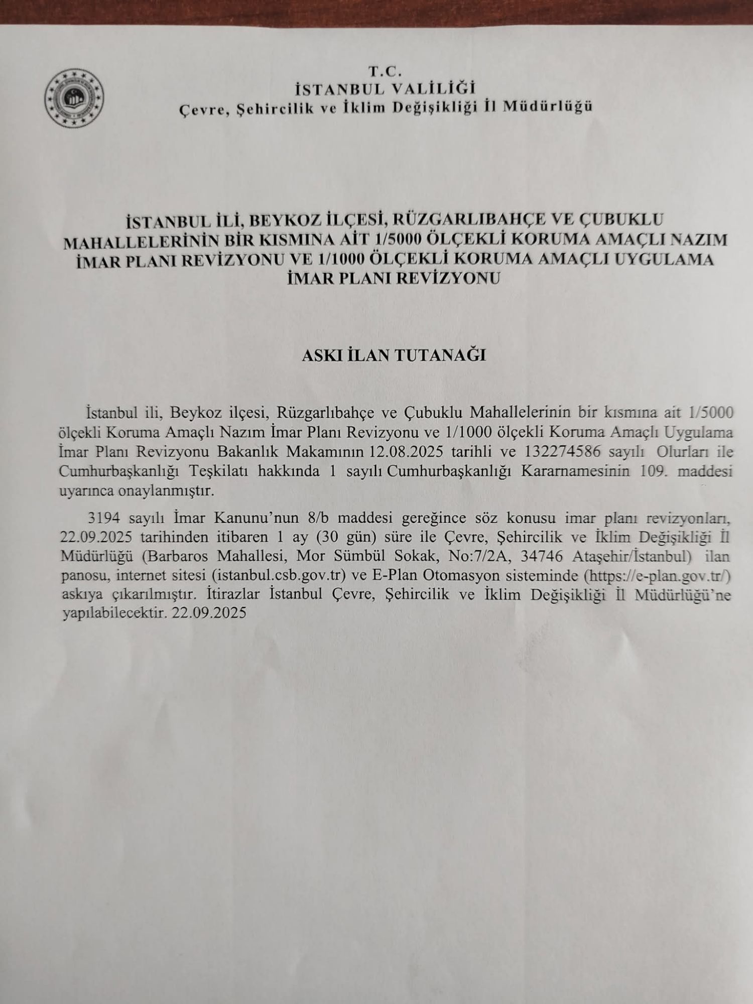 İtiraz etmek isteyenler Ataşehir çevre şehircilik bakanlığına edilecektir