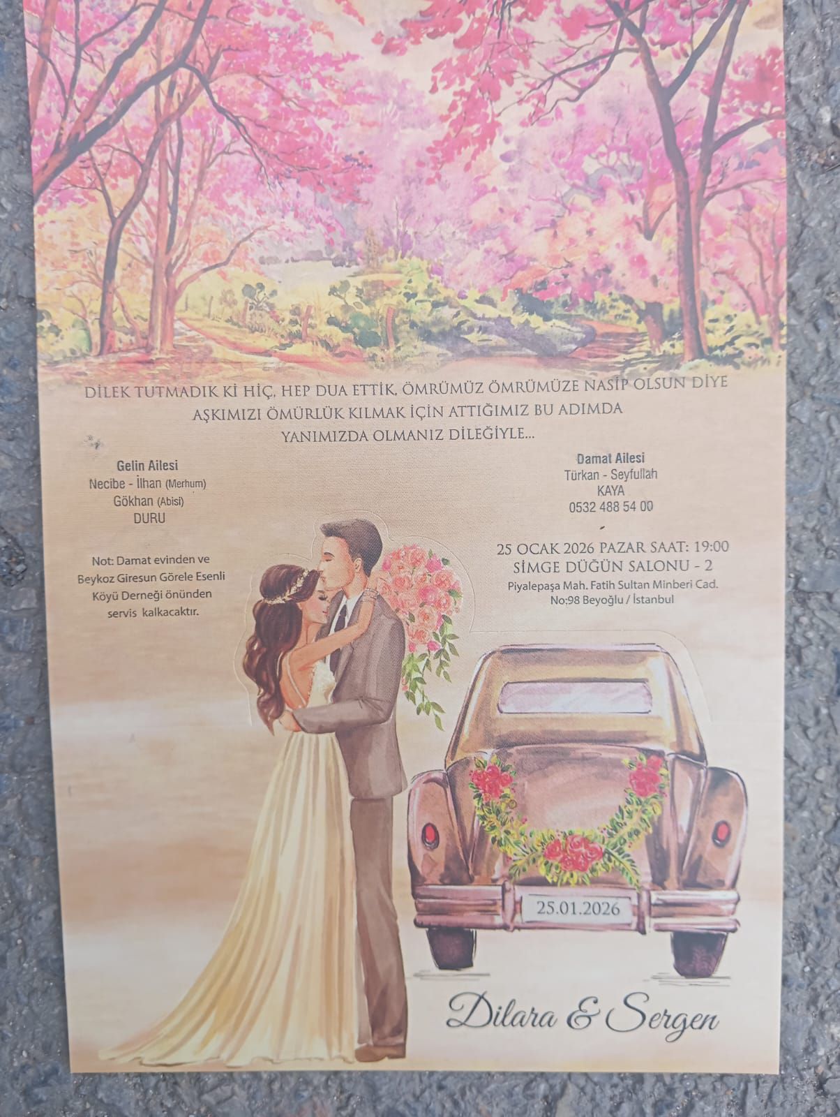 DÜĞÜN:25 OCAK 2026 PAZAR günü 19:00-23:00 saatleri arası OKMEYDANI ŞARK KAHVESİ SİMGE DÜĞÜN SALONU