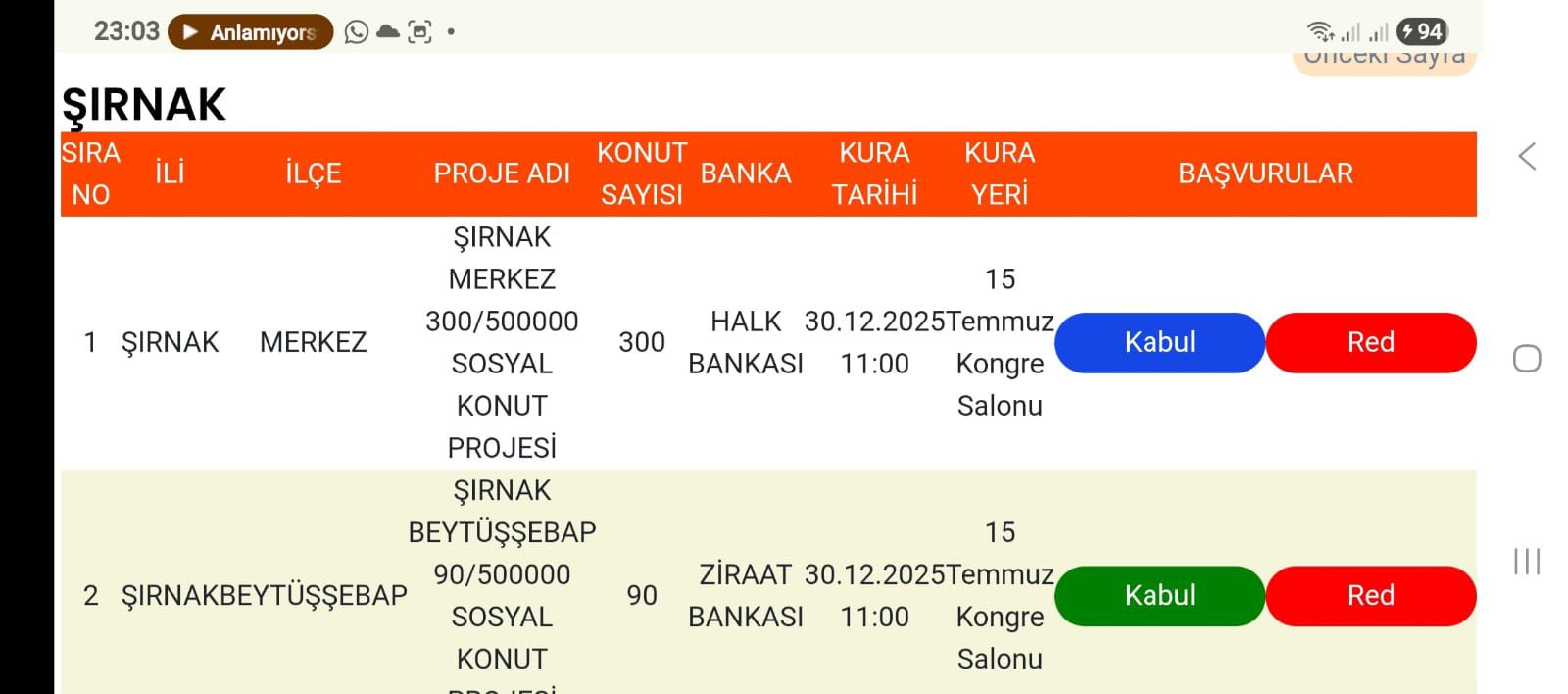 2.İl’in üzerine tıkladığınızda kuraya katılacakların listesi çıkıyor.KABUL ve RED var kabul’e tıkladığınızda isimleri göreceksiniz ve youtubede canlı kura çekiminde isminize çıkıp çıkmadığını göreceksiniz