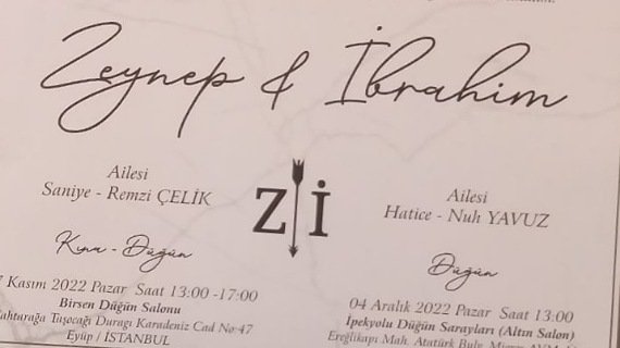 DÜĞÜN:27 Kasım 2022 Pazar günü (bu gün) 13:00-17:00 saatleri arası Eyüp /Eyüpsultan Birsen Düğün Salonunda olacaktır